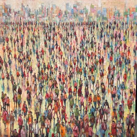 “I enter into a slightly meditative state when painting, especially with the more impressionistic figurative crowd scenes. As in life, each small figure takes on a characteristic of its own and has its own individual relationship to the figures that surround it. People seem to enjoy the paintings as they see something new in them each time they look at them.”