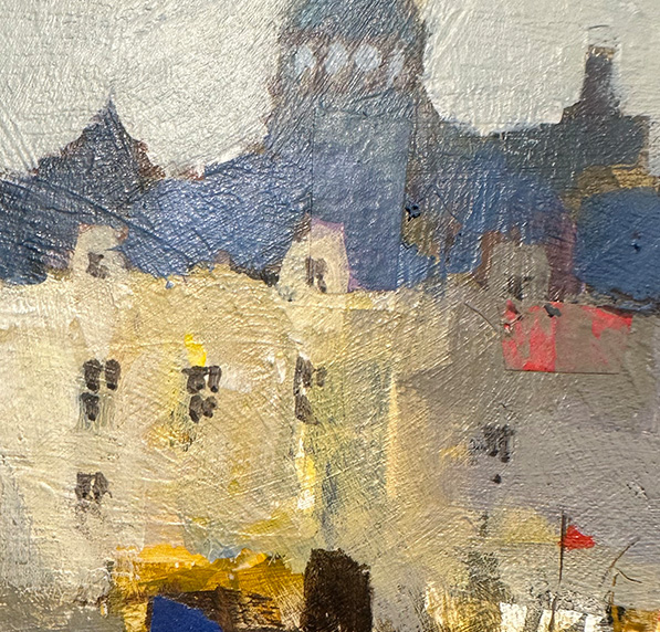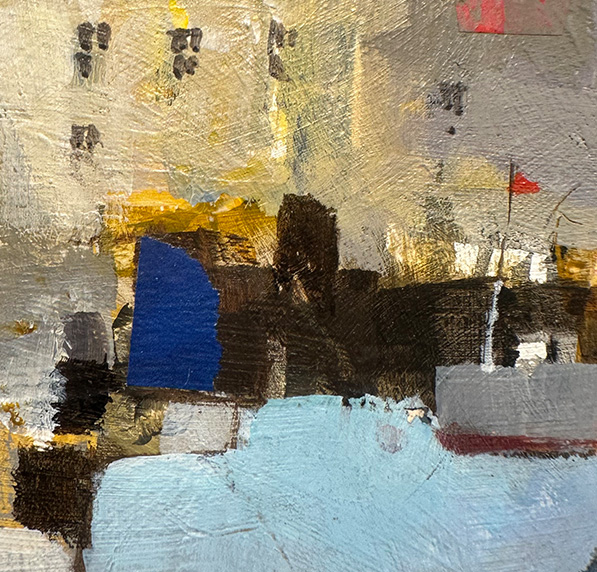 My paintings have become more abstract of late but it is important to me to convey a strong sense of place together with an air of mystery. Coming from fragments of memory, the painting surface is built up through layers of colour, sometimes leaving previous areas of paint exposed, maybe to indicate the history of the work.
