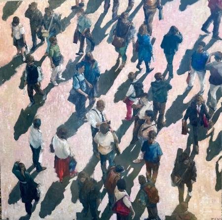 The study of human crowds and moving figures is the main focus of Julia’s paintings. Using a variety of photographic reference material and her own imagination, Julia captures the spirit of society on the move.
