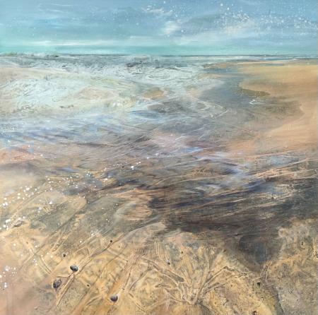 “Hengrave, where I live and work, is nestled in the heart of the River Lark valley, in Suffolk. We help manage a couple of acres of ancient woodland that is surrounded by beautiful waterways and a network of vital ditches. I’m passionate about painting water in any form; capturing the unceasing power of the sea, it’s rhythmical movement, translucency and the quiet reflective spots on our rivers that distort the world around, giving me the opportunity to visually reinterpret the abstracted environment.”