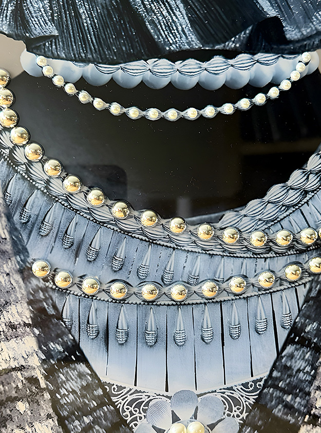 Caroline’s work sits at the intersection of fine art, fashion, and interior design, and has been commissioned and showcased by institutions such as the London Museum Docklands, Diageo, and The Langham Hotel. Most recently, she exhibited at South by Southwest London and was invited to feature at the Tennis Black List Awards during the HSBC Championships.