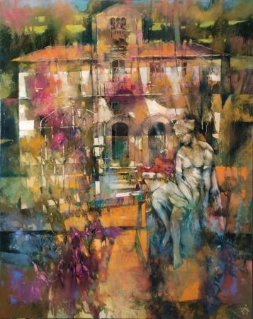 Working with oil paint on canvas, Alex Bertaina’s characteristic style seems to capture a landscape viewed throughout time. Criss-crossing shards of colour, light and shadow hint at the dynamic nature of each scene, throughout the changing seasons. Despite his unusual position as a self taught artist, Bertaina has received global, critical acclaim and homage.