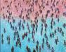 The focus on these figure paintings originated with a fascination of the shadows cast by figures when viewed aerially. The beautiful shapes cast on pavements are generally hard to appreciate when life is moving all around but are mesmerising when freeze framed in a photograph. Equally, the patterns made by bodies moving in a crowd or seen from unusual angles, have an artistic quality of their own.