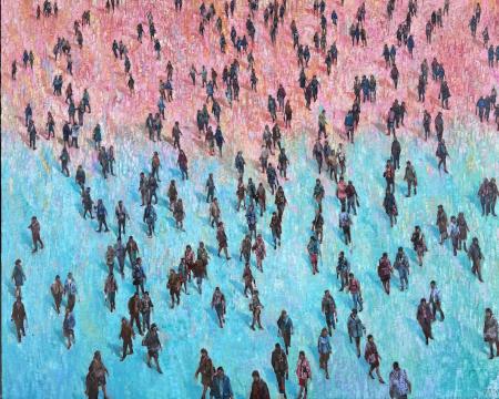 “I enter into a slightly meditative state when painting, especially with the more impressionistic figurative crowd scenes. As in life, each small figure takes on a characteristic of its own and has its own individual relationship to the figures that surround it. People seem to enjoy the paintings as they see something new in them each time they look at them.”