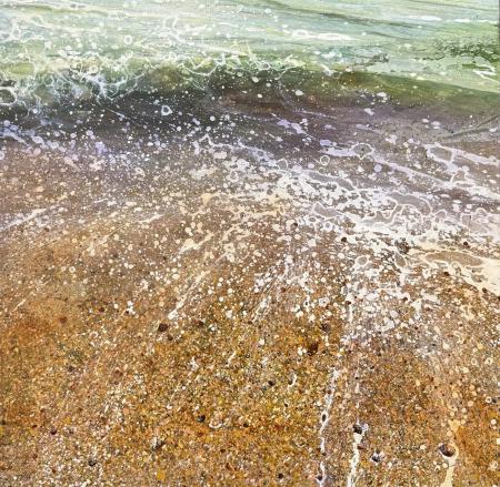 “Hengrave, where I live and work, is nestled in the heart of the River Lark valley, in Suffolk. We help manage a couple of acres of ancient woodland that is surrounded by beautiful waterways and a network of vital ditches. I’m passionate about painting water in any form; capturing the unceasing power of the sea, it’s rhythmical movement, translucency and the quiet reflective spots on our rivers that distort the world around, giving me the opportunity to visually reinterpret the abstracted environment.”