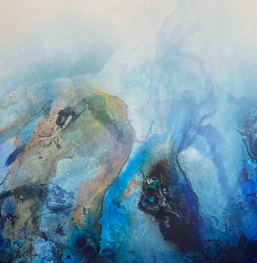 Sea and landscapes are the main narrative, although the paintings often describe atmosphere rather than being literal representations. I roughly plan the work but generally paint intuitively, making spontaneous decisions and problem solving as a painting develops. Many layers, some translucent, create depth of colour. Graduate of  Kent Institute of Art and Design, Canterbury, 2003