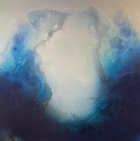Sea and landscapes are the main narrative, although the paintings often describe atmosphere rather than being literal representations. I roughly plan the work but generally paint intuitively, making spontaneous decisions and problem solving as a painting develops. Many layers, some translucent, create depth of colour. Graduate of Kent Institute of Art and Design, Canterbury, 2003