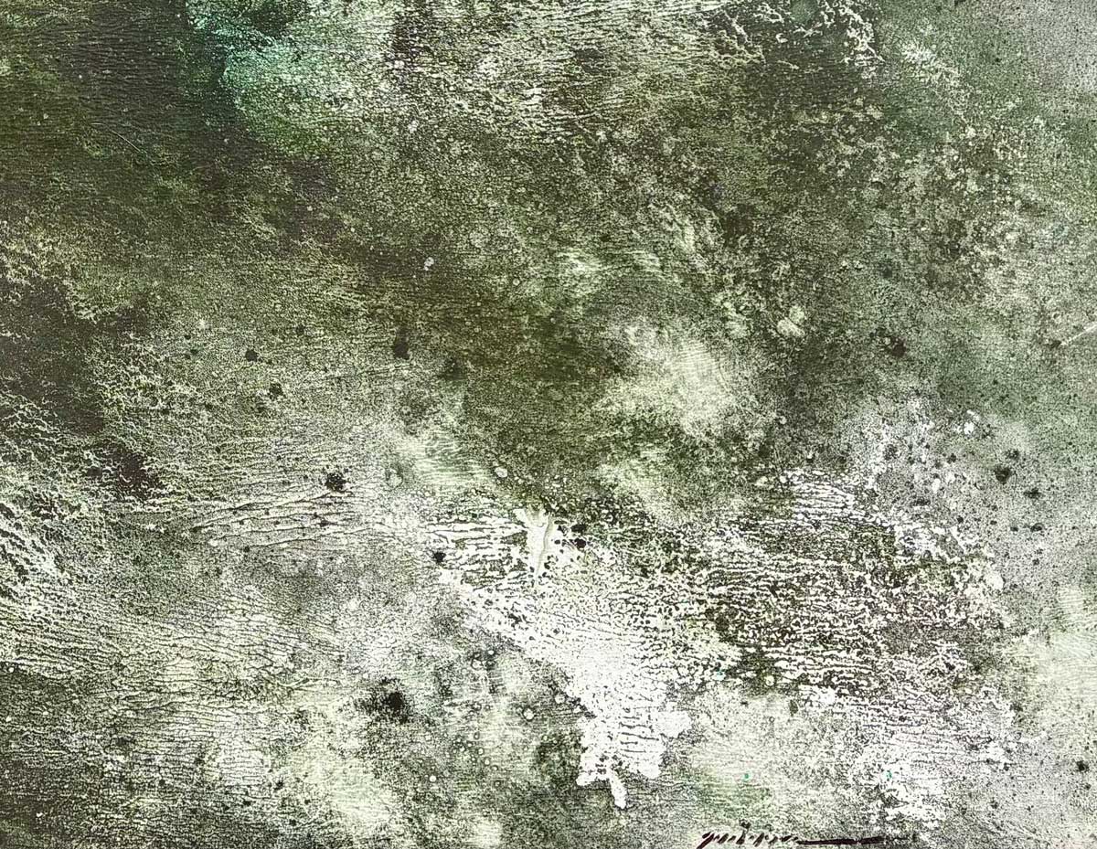 His work has a peaceful and charming atmosphere suddenly altered by the presence of splashes, textures and bright colors.