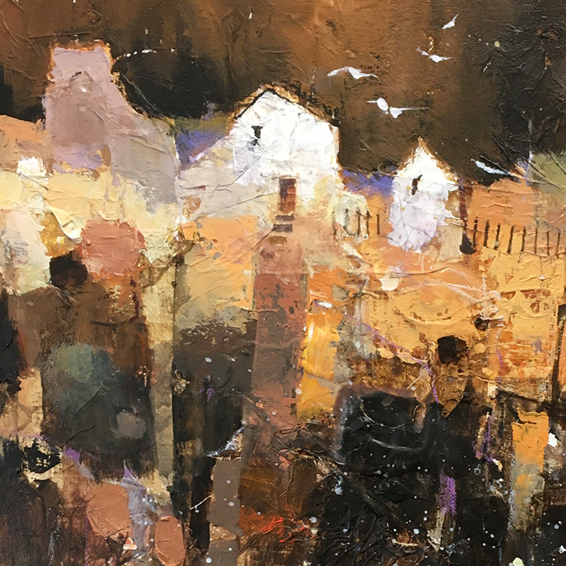My paintings have become more abstract of late but it is important to me to convey a strong sense of place together with an air of mystery. Coming from fragments of memory, the painting surface is built up through layers of colour, sometimes leaving previous areas of paint exposed, maybe to indicate the history of the work.