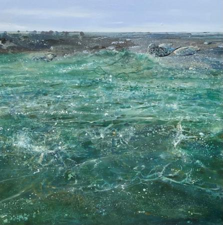“Hengrave, where I live and work, is nestled in the heart of the River Lark valley, in Suffolk. We help manage a couple of acres of ancient woodland that is surrounded by beautiful waterways and a network of vital ditches. I’m passionate about painting water in any form; capturing the unceasing power of the sea, it’s rhythmical movement, translucency and the quiet reflective spots on our rivers that distort the world around, giving me the opportunity to visually reinterpret the abstracted environment.”